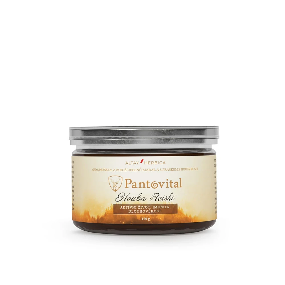 Složení: Přírodní med, prášek z paroží jelenů maral, houba Reishi (Lesklokorka lesklá).