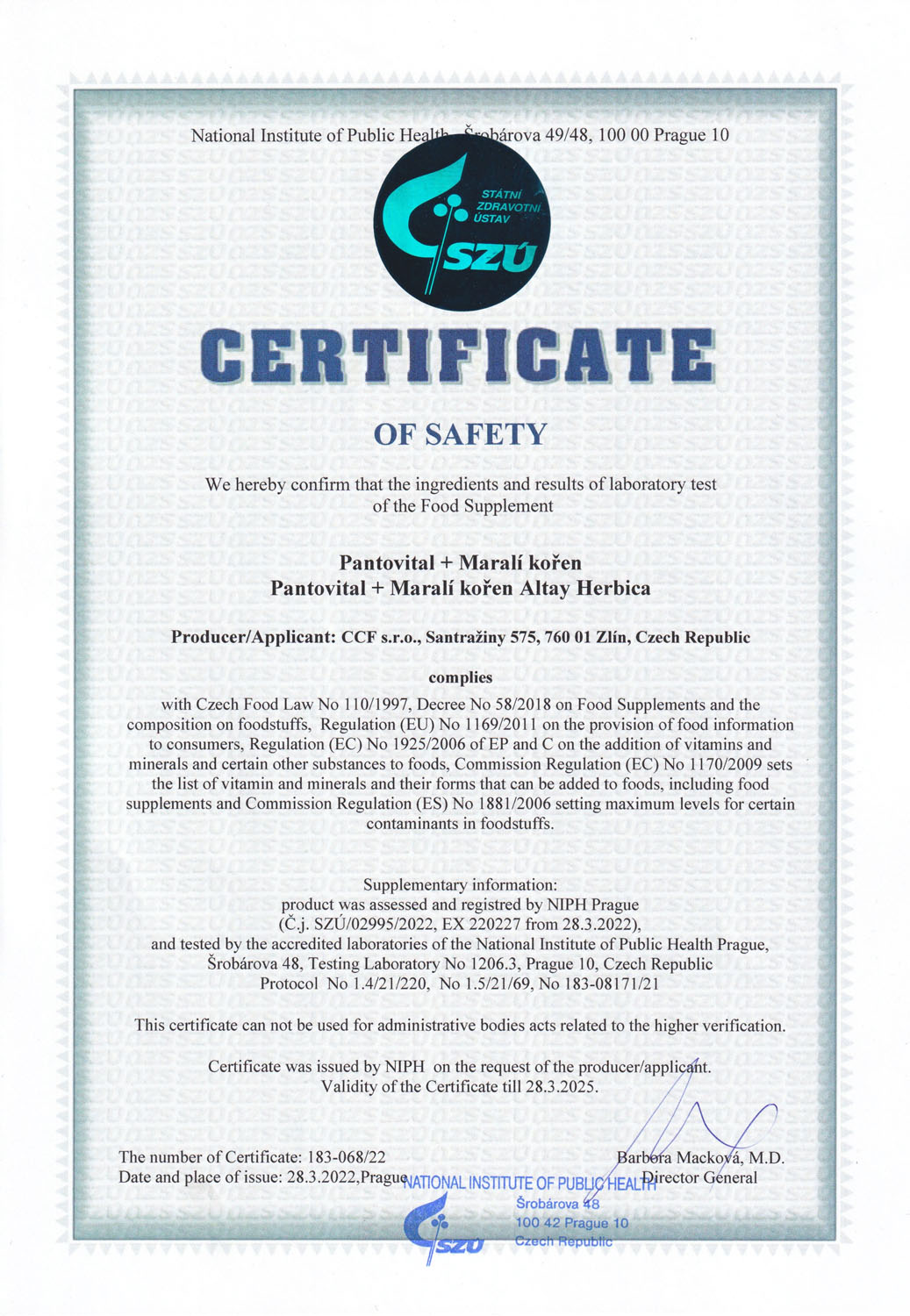 Ingredients: Maral deer antler powder, crushed maral root powder (Parcha Saflorivita, crushed), maral root extract, HPMC capsule.